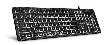 CONNECT IT DOODLE kancelářská drátová bíle podsvícená USB klávesnice, CZ + SK verze, černá